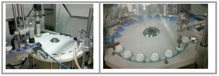 本機(jī)主要用于日化的灌裝作業(yè)。本機(jī)將灌裝、理蓋、下蓋、旋蓋三功能合在一個(gè)機(jī)體上,全過程實(shí)現(xiàn)自動(dòng)化,適用于化妝品、膏霜類產(chǎn)品、水劑等的灌裝、加熱溫控裝置還可以進(jìn)行熱灌裝。各部分的試用瓶型調(diào)整采用手柄轉(zhuǎn)動(dòng)實(shí)現(xiàn),輕松自如,簡(jiǎn)便快捷。灌裝方式采用了新型的微壓灌裝,使灌裝速度更快更穩(wěn)定,所以與同規(guī)格的機(jī)器相比本機(jī)的產(chǎn)量更高,效益更大。本機(jī)采用了先進(jìn)的可編程控制器控制機(jī)器的自動(dòng)運(yùn)行,光電檢測(cè)各部件的運(yùn)行狀況,所以自動(dòng)化程度高,操作簡(jiǎn)便。在此基礎(chǔ)上,本機(jī)變更灌裝設(shè)備,可以形成低真空灌裝方式。