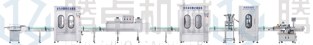 1.全自動生產(chǎn)線流程:人工把瓶放到送瓶轉(zhuǎn)盤上-自動洗瓶-自動高溫烘干殺菌-自動灌裝-人工燈檢-自動理蓋下蓋-自動旋蓋-自動打碼-自動貼標(biāo)-人工收瓶
